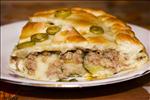 Пирог с картошкой, фаршем и солеными огурчиками |
