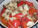В кастрюлю налить воды,уксус, масло,всыпать сахар, соль, перец, л.лист, перец чили и довести маринад до кипения. Предварительно приготовить овощи и грибы. Капусту разобрать на соцветия, грибы порезать на 4 части, перец квадратиками. Приготовить банки и крышки, все простерилизовать. На дно банок положить порезанный чеснок и сельдерей.В кипящий маринад кладем сначала капусту, закипит и варить 5-7 мин, затем кладем грибы, закипит - снова 5-7 минут варим и последними кладем перцы, после кипения, 5-7 минут варки и закладываем кипящую закуску в банки до горлышка вместе с маринадом. Закатываем, переворачиваем и в тепло. Закуска готова.А какая на вкус??? А чего стоит аромат?? Попробуйте - не пожалеете. |